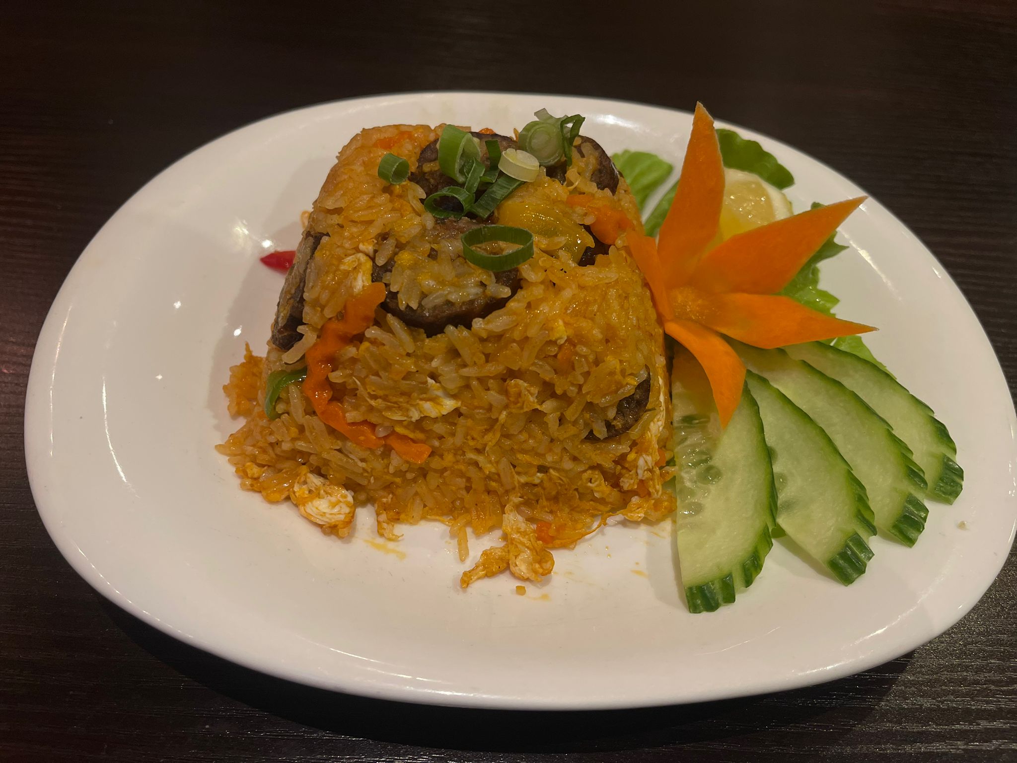 Riz thaï parfumé sauté aux carottes, oignons, ciboulette thaï et oeuf